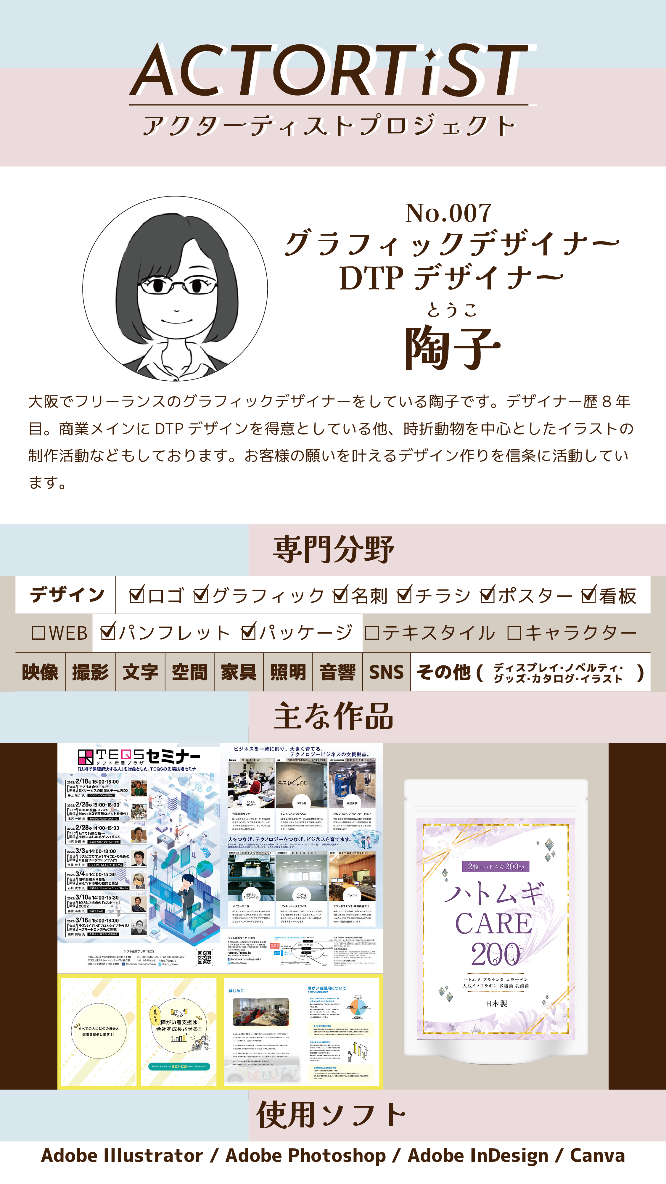 イベント企画やステージ演出では「体験として記憶に残る時間」をデザインし、グラフィックや映像制作では「本質が伝わるビジュアル」を構築します。案件ごとにチームを編成し、アート・デザイン・コピー・映像・音楽など、幅広い分野のプロフェッショナルが協働。多角的な視点からクリエイティブを制作します。